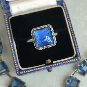 イギリスアンティーク バタフライウィング モルフォ蝶 TLM スクエア リング