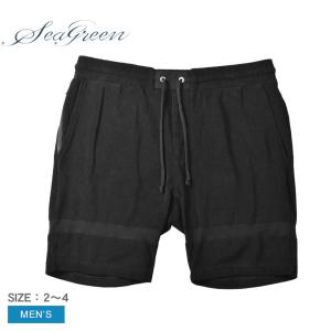 シーグリーン ハーフパンツ メンズ パイル ボーダー ショーツ SEAGREEN MSEA22S5107-S 黒 パンツ ボトムス ズボン 無地 送料無料