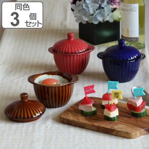 ココット 11cm 蓋付き ギャザー 同色3個セット ( 食洗機対応 電子レンジ対応 オーブン対応 耐熱皿 グラタン皿 )