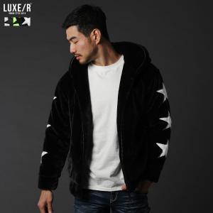 シャギー ボア ジャケット パーカー フーディ メンズ 冬 ジップ 袖 星 スター ライン フード スポーティ ゴルフウェア 【アウトレット返品交換不可】
