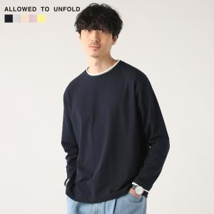 カットソー Tシャツ トップス メンズ 秋 秋服 鹿の子 ロールアップ クルーネック レイヤード 長袖