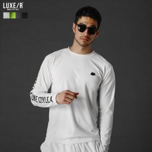 カットソー トップス メンズ コンプレッション 長袖 ナイロン ストレッチ ラバープリント ネオンカラー