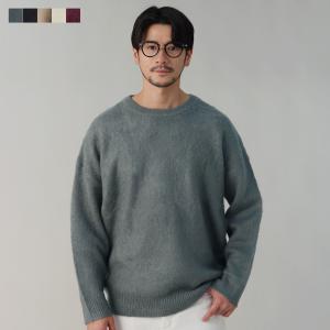 ニット メンズ 秋 秋服 冬 冬服 春 春服 アクリル クルーネック 長袖 モヘアタッチ 無地 暖かい キレイめ チャコール ブラック ベージュ ホワイト ワイン M L
