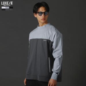 【セットアップ対応】 ゴルフウェア メンズ トップス プルオーバー 春 春服 長袖 撥水 切替 配色 ハイネック ロゴ 布帛 止水ジップ ストレッチ ポケット