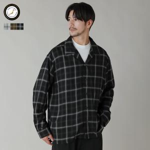 シャツ チェックシャツ トップス メンズ 秋 秋服 春 春服 日本製 国産 オンブレチェック 総柄 オープンカラー 長袖 レーヨン ライトアウター M L AUD6665