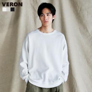 ニットソー カットソー 日本製 国産 綿100% ハニカム クルーネック 長袖 メンズ 冬服 春服 伸縮 M L オフホワイト オートミール ブラック VERON