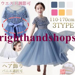 ドレス 子供 ピアノ発表会 子どもドレス ヘア飾り パニエ 中学生 大人 ブルー