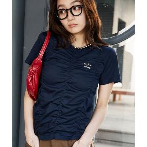 tシャツ UMBRO × PUBLUX/アンブロ 別注 ワンポイント 刺繍 ギャザー Tシャツ 限定展開 レディース