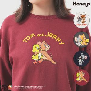 トップス スウェット 長袖 刺繍 トムとジェリー 裏毛 綿 ゆったり レディース SALE Honeys ハニーズ トムとジェリー/トップス