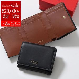 FERRAGAMO フェラガモ 三つ折り財布 COMPACT WALLET 22 0867 レディース レザー ロゴ バイカラー ミニ財布 001/NERO