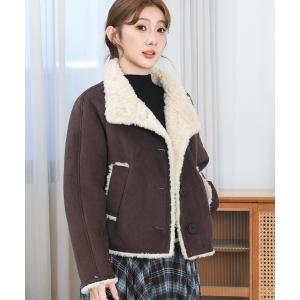 コート アウター 配色 ボア コンパクト ボタン ジャケット レディース