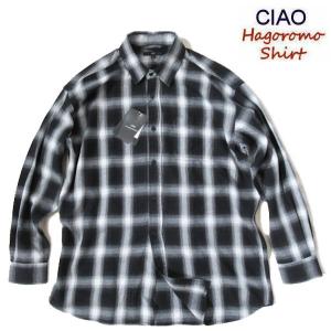 CIAO/羽衣シャツ【オンブレチェックダッドシャツ】ルーズシルエット/ビッグシャツ/グラデーションチェック 253-00 19)ブラック