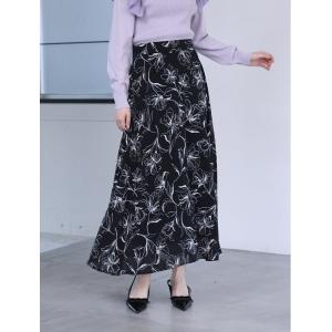 スカート 「U150サイズあり」フラワープリントフレアロングスカート