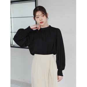 ブラウス シャツ ハイネックギャザー袖シャーリングブラウス レディース