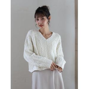 ニット セーター ぽんぽんラメヤーンVネックニット レディース