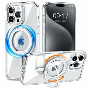KMAMBNG iPhone 15 Pro 用 ケース 縦横両対応 リング MagSafe対応 ワイヤレス充電対応 半透明マット スマ