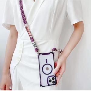 【大人気】iPhone全シリーズiPhone16/17 ケース 掛けショルダー マグセーフ充電 女子 シンプル カジュアル ホルダーストラップ 透明 ブラック/ホワイト/パープル