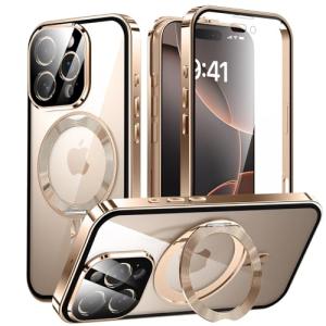 iPhone 16 Pro 用 両面 MagSafe対応 ケース アイフォン16プロ アルミバンパー 360°回転スタンド Uovon スマホケ