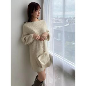 ワンピース オープンショルダーシアーニットワンピース