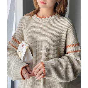 ニット セーター 「JaVa ジャバコラボ」大人カジュアルを格上げ。リバーシブル2way配色ビッグハンドステッチオーバーサイズニット レディース