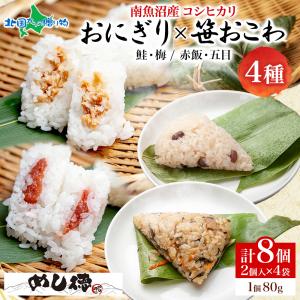 おにぎり笹おこわ 食べ比べセット 4種x2個 計8個 笹の葉 おにぎり 冷凍 おこわ レンジ 魚沼産 おむすび 鮭 梅 赤飯 五目