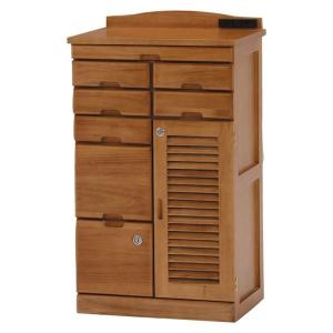 サイドボード 電話台 約幅48cm ライトブラウン 木製 2口コンセント 鍵付き 隠しキャスター付き 多引き出し FAX台 リビング