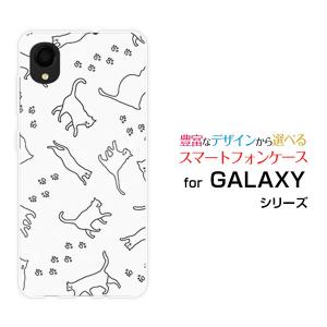 GALAXY A22 5G SC-56B ギャラクシー スマホ ケース/カバー ガラスフィルム付 キャットウォーク(モノトーン) ねこ 猫柄 キャット モノトーン