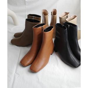 ブーツ スクエアトゥショートブーツ/デザイン太ヒール レディース