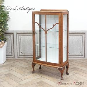 イギリス アンティーク 家具 ショーケース 飾り棚 キャビネット クロス張替済 ディスプレイ ウォールナット 1930年代 レトロ 英国 antique80097