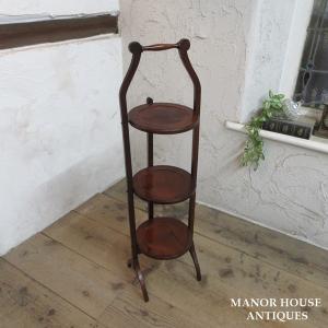 イギリス アンティーク 家具 ケーキスタンド 3段 折り畳み式 飾り棚 木製 マホガニー 店舗什器 英国 SMALLFUNITURE 6887d
