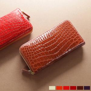 クロコダイル長財布 レディース シャイニング 加工 ラウンドファスナー 財布 全20色 (06000495-1r) 金運