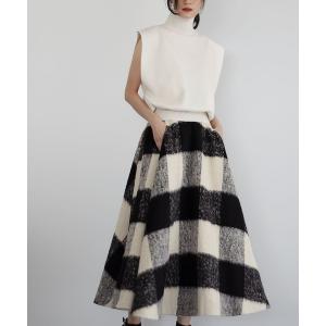 スカート 「VERY 1月号掲載」ブロックチェック起毛ロングフレアスカート