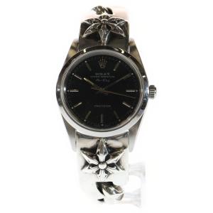 クロムハーツ×ロレックス オイスターパーペチュアル エアキング Ref.14000M スターモチーフ クラシックリンク 腕時計 ブラック文字盤