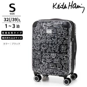 キースへリング 拡張機能付きスーツケース 機内持ち込み Sサイズ [TSAロック搭載] ブラック 15900