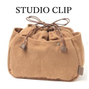 スタジオクリップ レディース ハンドバッグ 巾着バッグ コーデュロイ キャメルブラウン アソートポケット