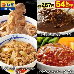 【衝撃の54%OFF】 松屋 公式 牛めしの具 (プレミアム仕様) 7食 と ブラウンソースハンバーグ 7食 と カレー7食 計21食セット 牛めし ブラウンソース 非常食