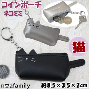 ネコミミコインポーチ ナスカン付き 牛革 ノアファミリー シルバー ブラック小銭入れ コインポーチ コイン入れ キーホルダー 鍵 財布 かわいい おしゃれ ねこ ネ