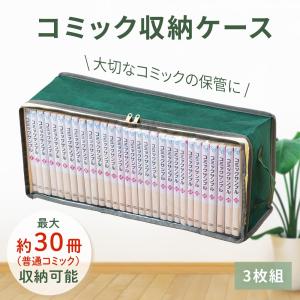 コミック収納ケース 3枚組 約30冊 透明窓 Wファスナー 3辺開き 取っ手付 折り畳み コンパクト 新書 保管 ホコリ 汚れ クローゼット ベッド下