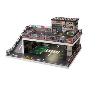 1/64スケール ダイキャストモデルカーディスプレイ 車両モデルディスプレイラック コレクター向け ランプ付き 卓上装飾 ミニチュア駐車場