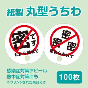 丸うちわ 小ロット コロナ対策 注意喚起 ノベルティにも! 100枚 密