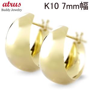 ゴールド フープピアス 月甲 ピアス レディース 幅 7ミリ10k 幅広 ペア フープ リング 月形 三日月 シンプル おしゃれ 人気 あすつく 送料無料 セール SALE