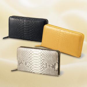縁起の良い蛇革ラウンドファスナー長財布 ゴールド ナチュラル ブラック