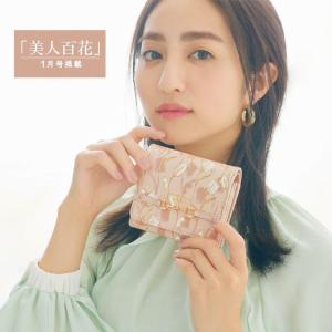 送料無料 サマンサタバサ 美人百花 限定 チューリップ 柄 牛革 二つ折り財布 折財布 ミニ財布 ベージュ 新品 証明書付 ギフト包装無料 開運 金運up 春財布
