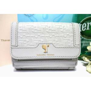 送料無料 サマンサタバサ ST ロゴ エンブレム付 型押 牛革 ミニ財布 三つ折り財布 折財布 ライトグレー 未使用 タグ付 展示サンプル品 開運 金運UP ユニセックス