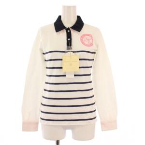 未使用品 サマンサタバサ Samantha Thavasa UNDER25 ゴルフウェア ポロシャツ 長袖 レギュラーカラー 鹿の子 ロゴ ボーダー柄 S 白 紺