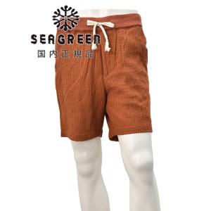 シーグリーン Seagreen ハーフパンツ メンズ ショートパンツ Crochet Like Russel Knit レンガ コットンリネン ゴムウエスト&ドローコード調節 国内正規品