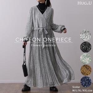 ワンピース シフォン プリーツ ロングワンピース レディース プリーツワンピ 長袖 きれいめ 花柄