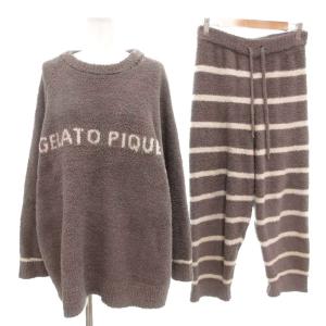 ジェラートピケ gelato pique セットアップ ルームウェア トレーナー イージーパンツ F ボーダー 茶 ブラウン /AE