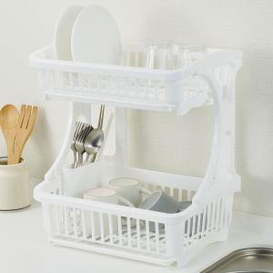 水切りラック スキット 2段式水切りバスケット ホワイト ( 2段 水切りかご 水切りカゴ 水切りバスケット 水切り シンク上 日本製 コンパクト )
