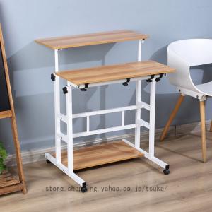 折りたたみテーブル 昇降式 スタンディングデスク PCテーブル 耐荷重がいい サイドテーブル デスク キャスター付き 可動式デスク 小さめ 机 木目調 シンプル